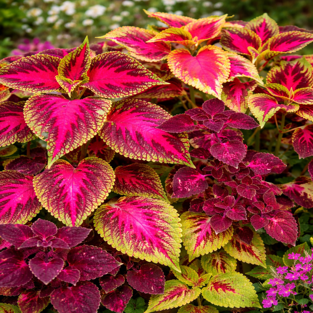 Coleus Rainbow Mix is a vibrant ornamental plant known for its striking, multi-colored foliage in shades of red, green, yellow, and purple. Unlike typical flowering plants, Coleus is grown for its stunning leaves, making it perfect for gardens, pots, borders, and indoor decorative arrangements.