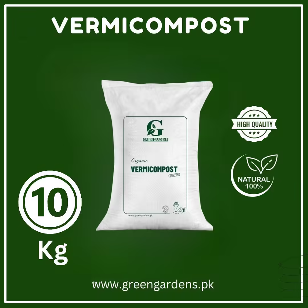 Enhance your garden’s health with Vermicompost, 10 Kg (100% Pure & Natural) — a nutrient-rich organic fertilizer produced through the natural breakdown of organic matter by earthworms. This premium compost improves soil fertility, aeration, and moisture retention, ensuring stronger roots and healthier plants. Ideal for vegetables, fruits, flowers, lawns, and indoor plants, vermicompost provides a balanced supply of nutrients and beneficial microbes to promote sustainable and chemical-free gardening in Pakistan.